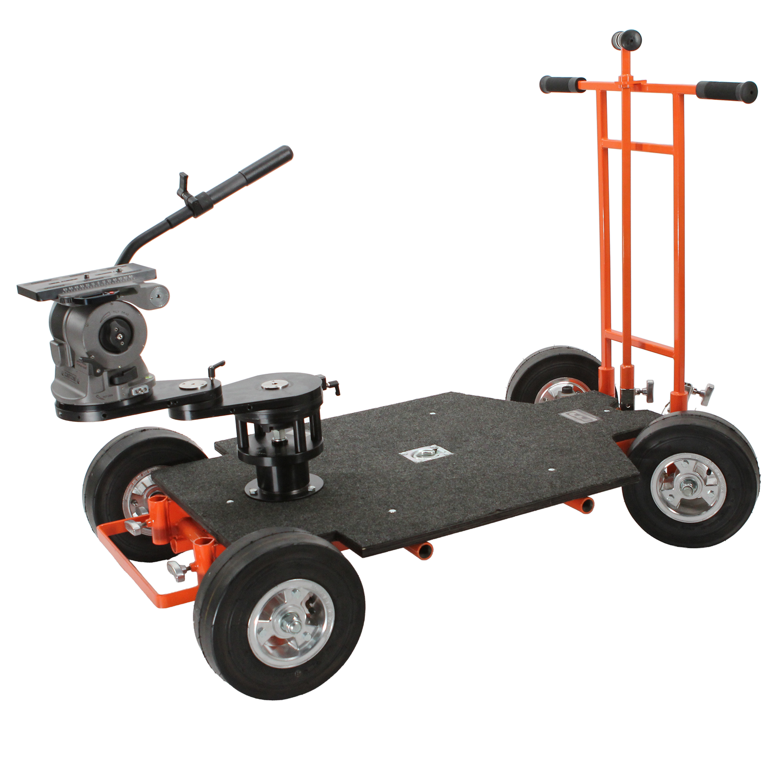 Matthews builds the strongest platform dollies in the business! For years the Doorway Dolly has proven its versatility on stage and location. Quick change pneumatic wheels are standard equipment. The Dolly can easily be fitted with Matthews Hot Buttons for use on straight or curved track. The platform is fitted with a recessed camera tie-down and is carpeted for a nonslip, low maintenance surface.