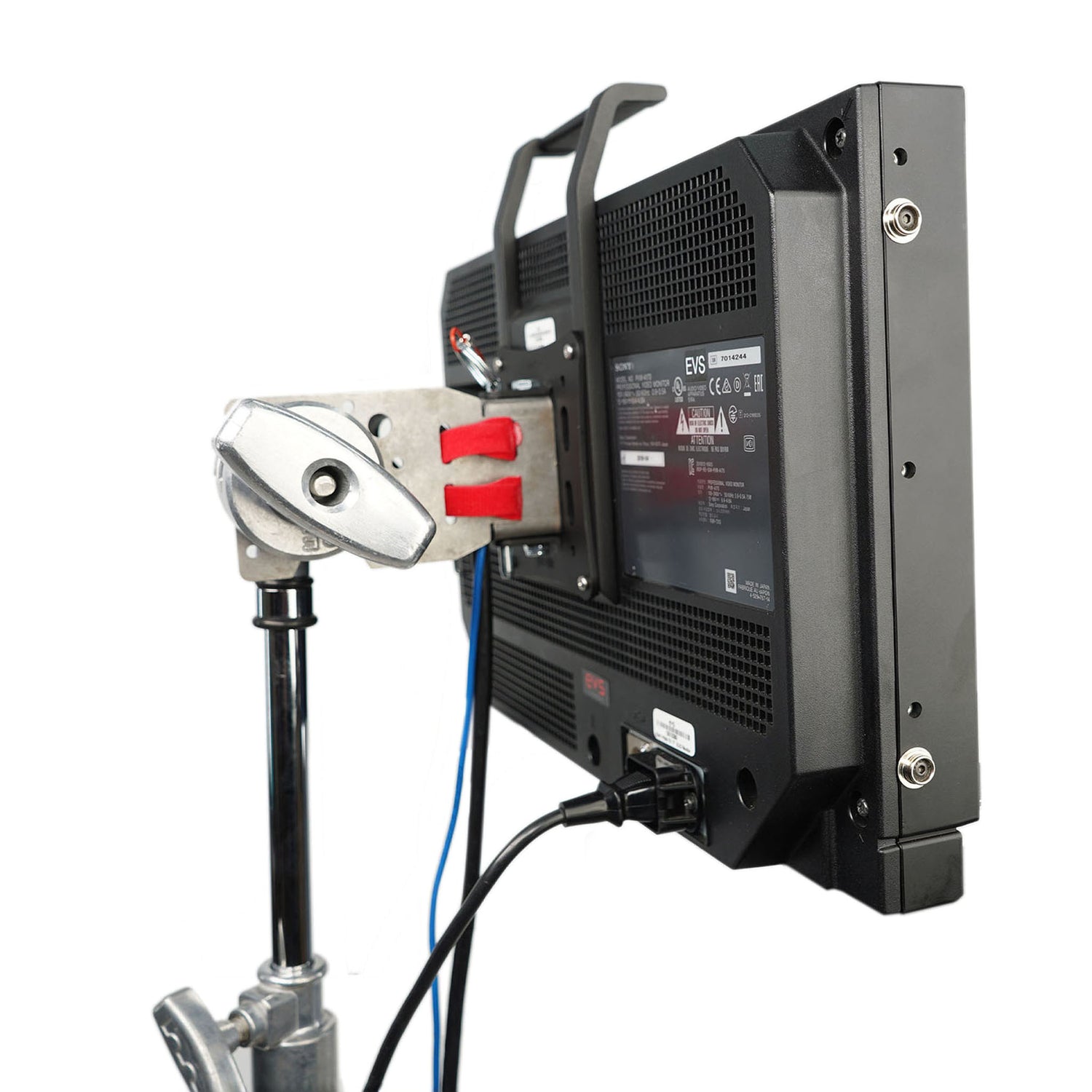 - Low profile design folds down flat to remain on the monitor for the next location.